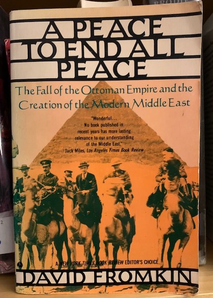 A Peace to End All Peace: The End of the Ottoman Empire and the Creation of the Modern Middle East (1989) by David Fromkin recounts the emergence of the modern Middle East from the remains of the Ottoman Empire after WW I. The powers of Europe talked about Arab independence (in Fromkin’s words), “a cause in which they did not in fact believe,” but used as a pretext “to hide their meddling in Moslem (sic) religious affairs.” The present-day boundaries are artificial, he argues, not in the best interest of the people of the region and will not hold.
