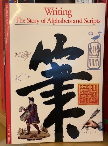 Writing: The Story of Alphabets and Scripts by Georges Jean (1992) is a pocket-sized, richly illustrated book on the history of scripts. The text is more of a decoration, and the illustrations are the main story. It also describes the decipherment of hieroglyphics and cuneiform. The reader also gets a tour of Asian scripts and a couple of articles on the text used as art. Oddly, the pages in the beginning are thick and glossy. Those toward the end are standard paper and black and white. Nevertheless, I really loved this book.