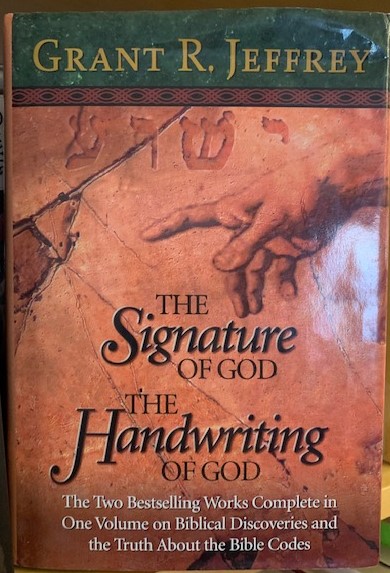 The Signature of God/The Handwriting of God by Grant R. Jeffrey (1999) is a two-volume set of previously published absolute bullshit. The first volume points to “scientific” aspects of the Bible, the second to “Bible codes,” that is, hidden messages in scripture by counting so many nth letter of the text. Among the claims for scientific knowledge is a demonstration of the understanding of Conservation of Energy. God rested from all his works after the sixth day of creation, and therefore matter can be neither created nor destroyed. Yep.