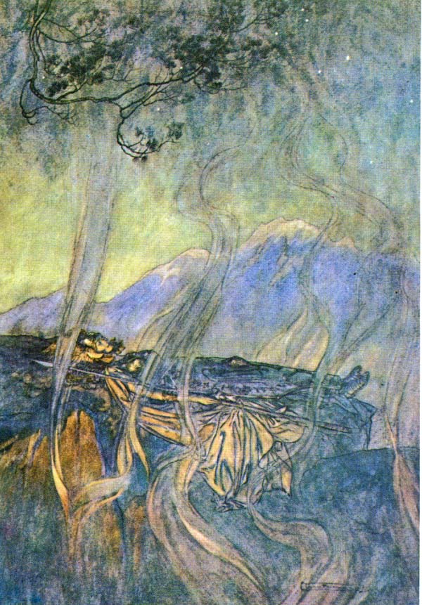 Originally the image was published in the following book:Wagner, Richard (translated by Margaret Amour) (1910). The Rhinegold and the Valkyrie. London:William Heinemann, New York: Doubleday, Page 160., Public Domain